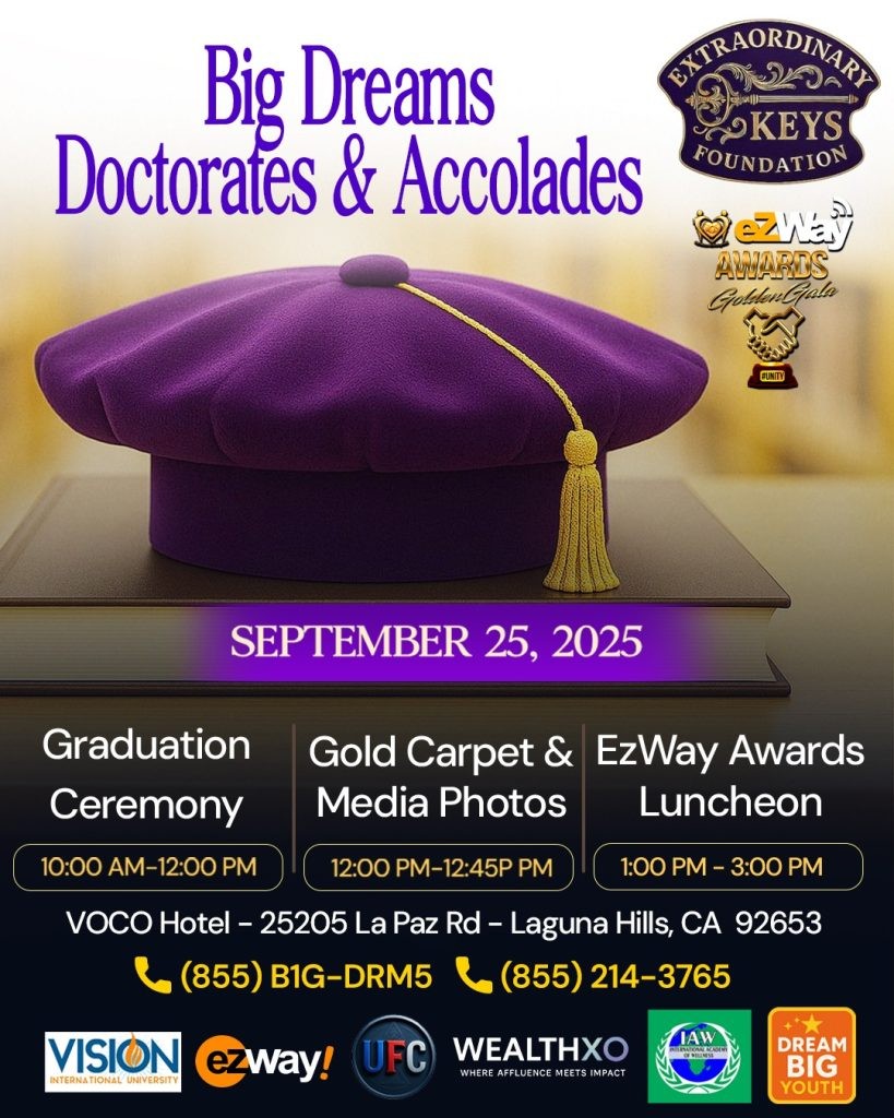 An exclusive Gold Carpet event honoring world-class leaders, humanitarians, and visionaries with Honorary Humanitarian Doctorate Degrees. Join us September 24-25, 2025 in Laguna Hills, California for a prestigious ceremony that celebrates extraordinary impact, featuring televised coverage, professional media production, and networking with distinguished changemakers.